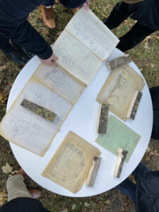 An dieser Stelle knüpft Hans-Rainer Hitschhold, Ortsbürgermeister von Bledeln, an. Er erzählt die Geschichte des Ehrenmals zwischen Bledeln und Lühnde. Sehr eindrucksvoll visualisiert durch originale Dokumente, die Mitte des Jahres in Bledeln „ausgegraben“ wurden und den Bau bzw. die Planung der Erweiterung des Ehrenmals zum Gedenken der Opfer des 2. Weltkriegs dokumentieren.