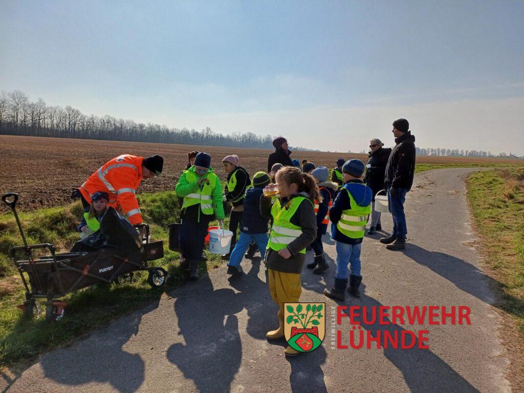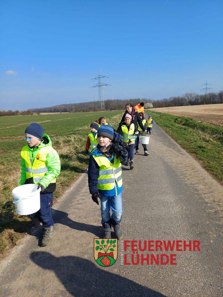 Lühnde. Am Samstag, den 09. März, lud der Ortsrat Lühnde in Zusammenarbeit mit dem Wasser- und Bodenverband Lühnde sowie der Freiwilligen Feuerwehr dieses Jahr wieder zur großen Müllsammelaktion. Auch die Kinderfeuerwehr Lühnde hat sich an dieser Aktion mit Ihren kleinen und großen Helfern beteiligt. Gestartet sind wir mit 13 Kindern und einigen Eltern um 10 Uhr vom Feuerwehrgerätehaus in Richtung Grundschule und Klein-Sehnder-Weg. In den nachfolgenden zwei Stunden wurde von allen Beteiligten hochmotiviert und äußerst fleißig herumliegender Unrat aufgesammelt. Einige Kinder haben dabei sogar im Klein-Sehnder-Weg einen Geocaching-Schatz gefunden, welcher natürlich wieder in sein Versteck zurück gelegt wurde. Belohnt wurden alle fleißigen Helfer mit einem kleinen Imbiss und Getränken beim geselligen Abschluss der Aktion.