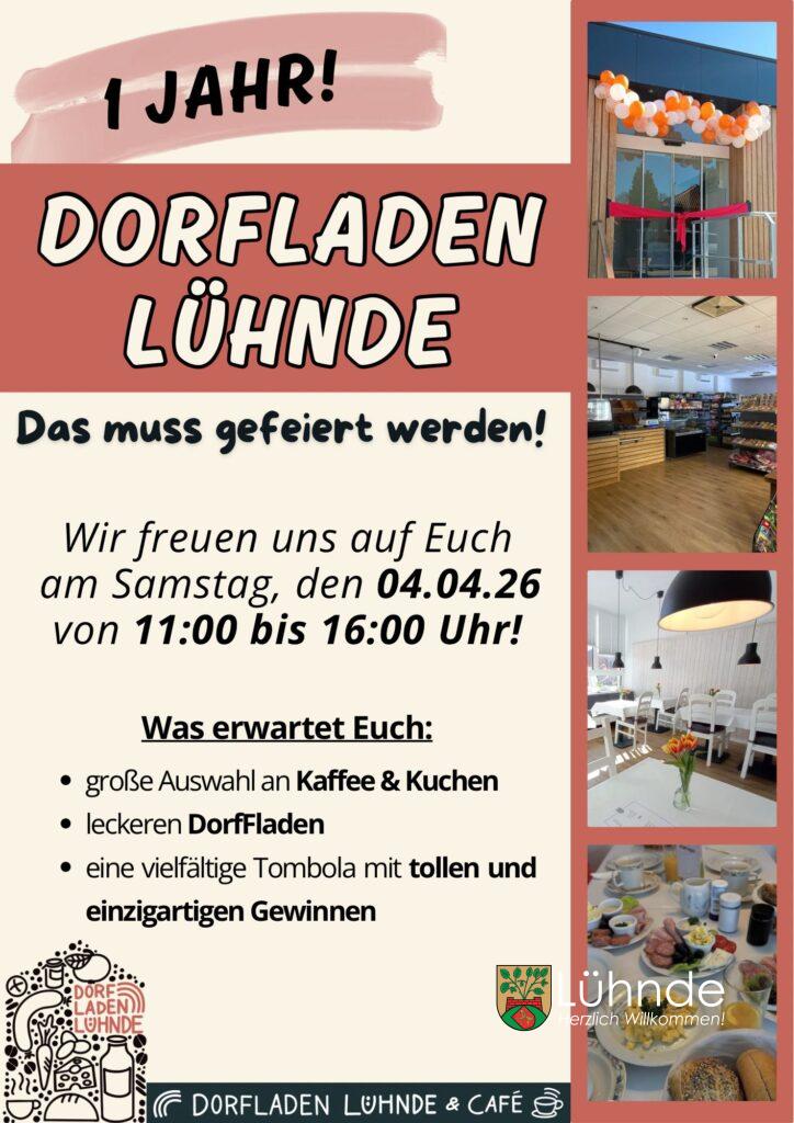 Der Dorfladen in Lühnde wurde am 04. April 2025 feierlich eröffnet. Aus diesem Anlass wird nach genau einem Jahr gefeiert. Nähere Informationen stehen in dem nachfolgenden Flyer.