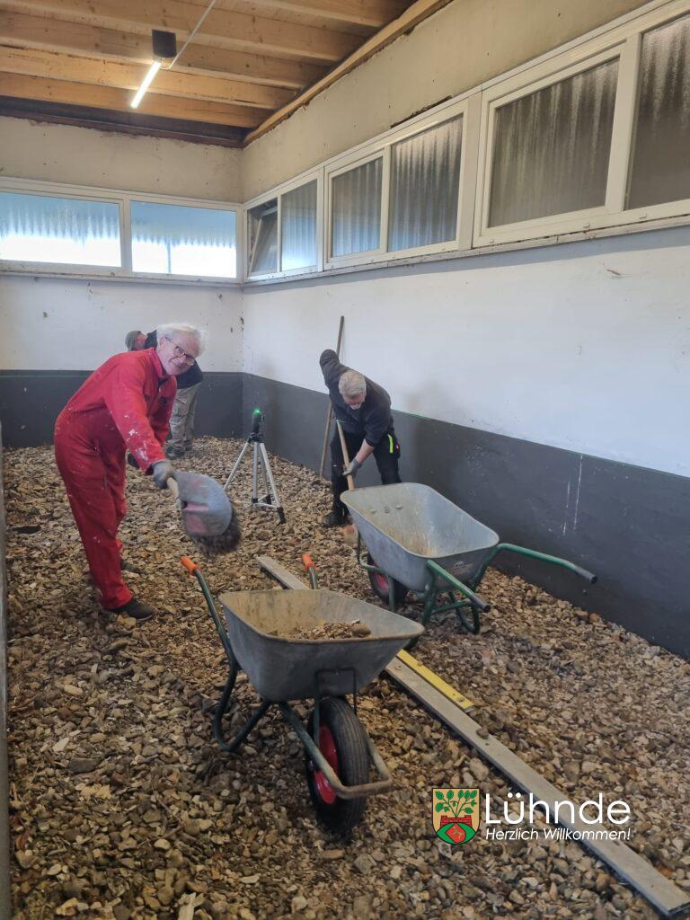 Ein weiteres Projekt konnte dank der tatkräftigen Unterstützung des Vereins „Zukunft Lühnde“ umgesetzt werden: In einer Wochenendaktion wurden Bodenplatten in einem dringend benötigten Materialraum für den Förderverein verlegt. Der zuvor geschotterte Raum wurde somit nutzbar gemacht. Herzlichen Dank an „Zukunft Lühnde“ für Manpower, Gerät und Einsatzfreude.
